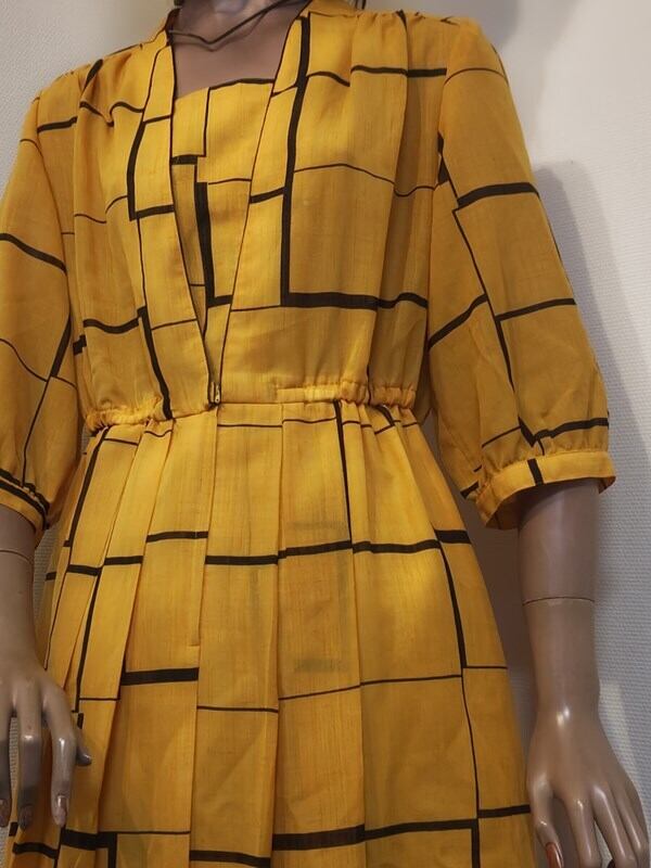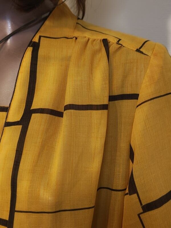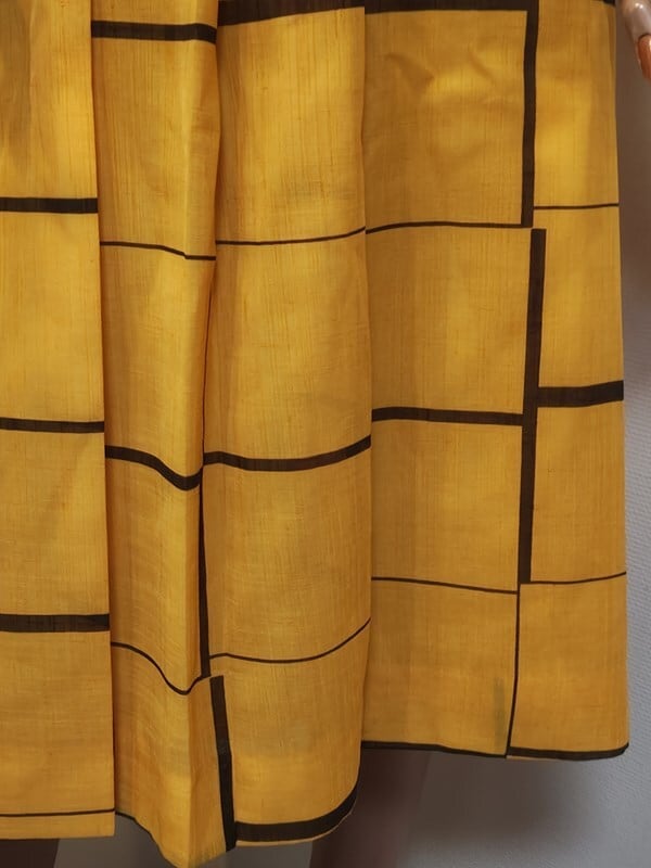 マスタードイエローxブラウンのタイルの様な柄がとっても