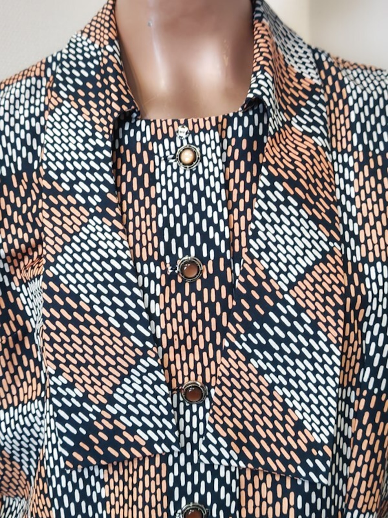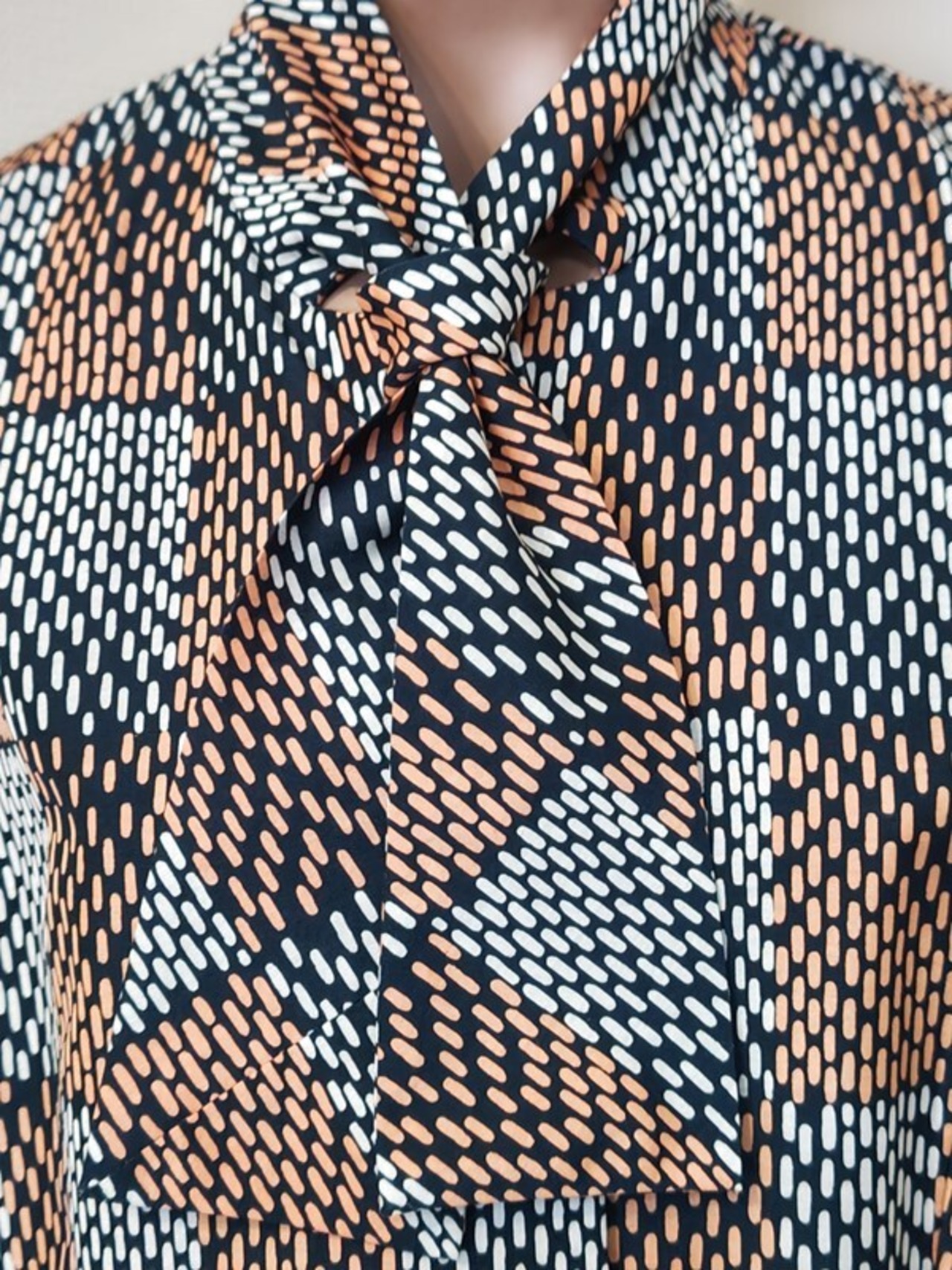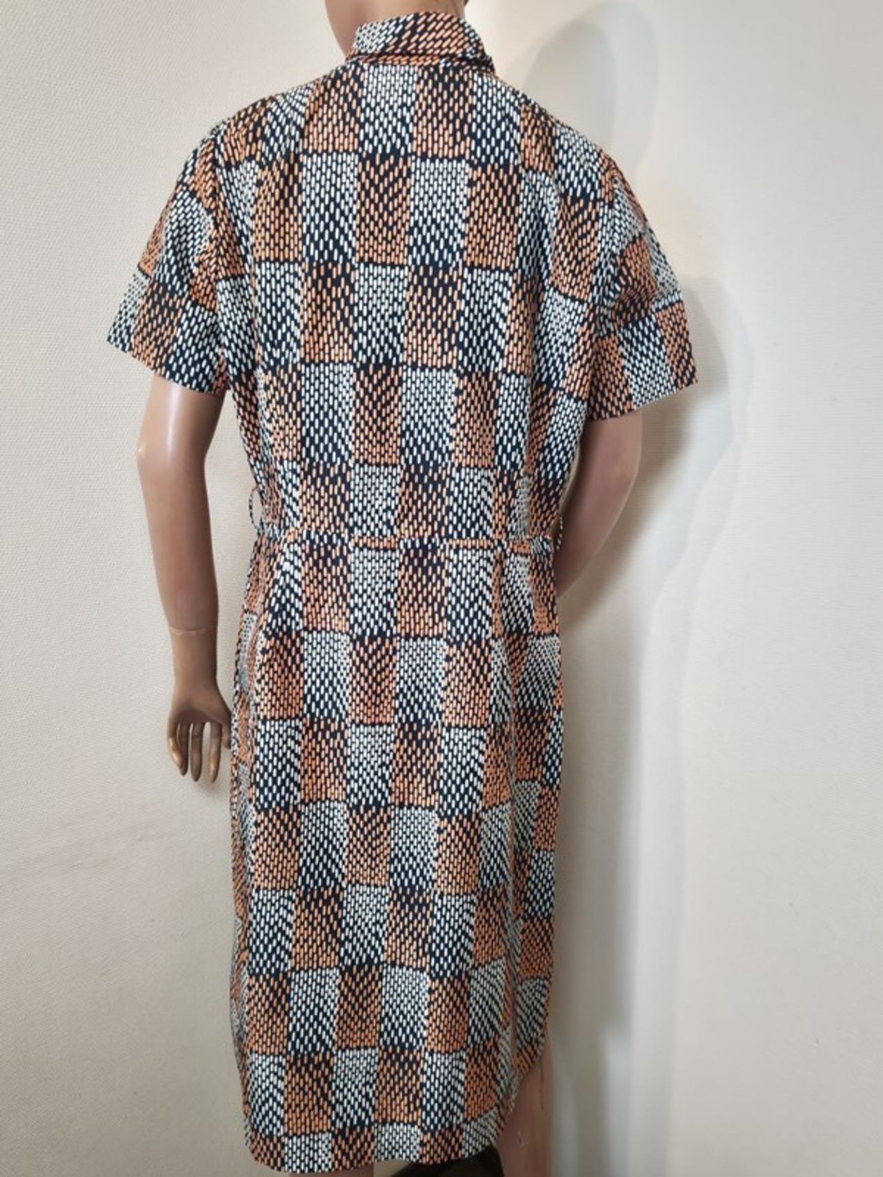 お仕立て品*黒白オレンジ幾何学柄・帽タイレトロワンピ