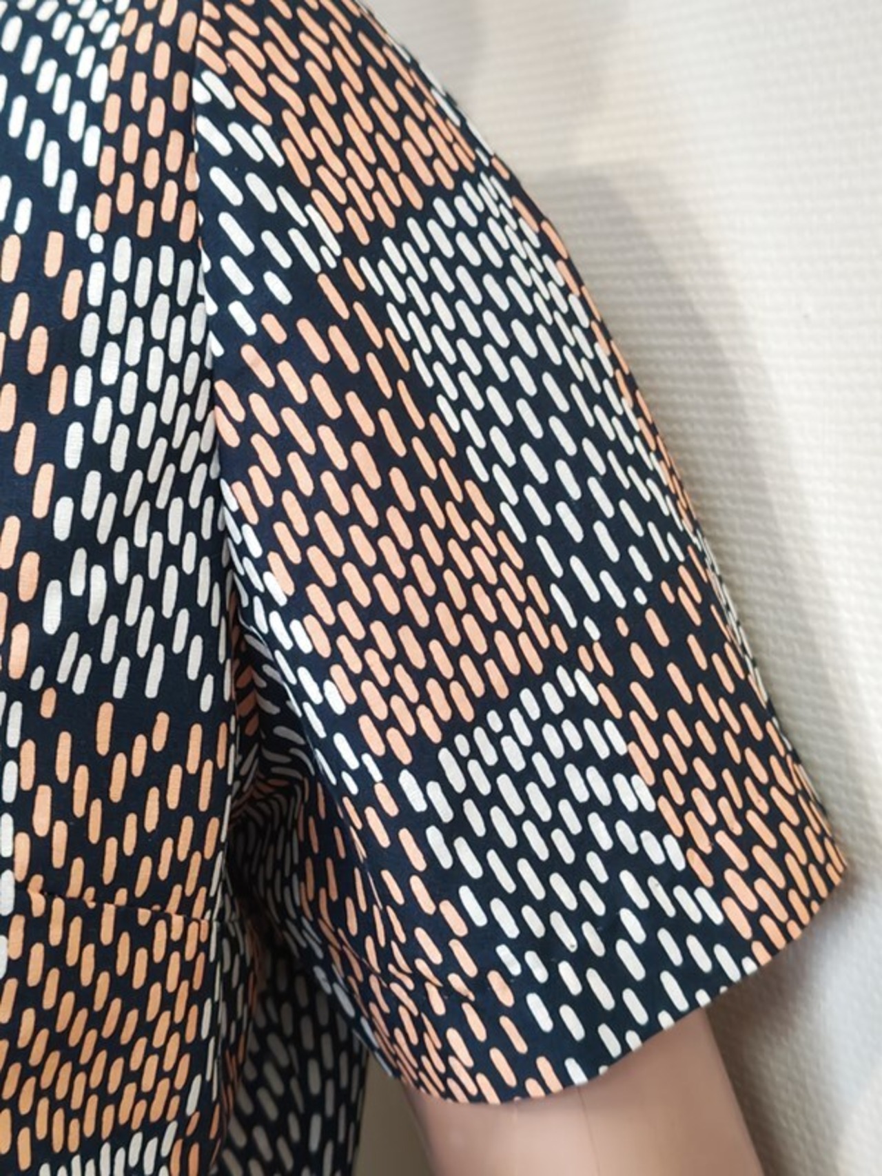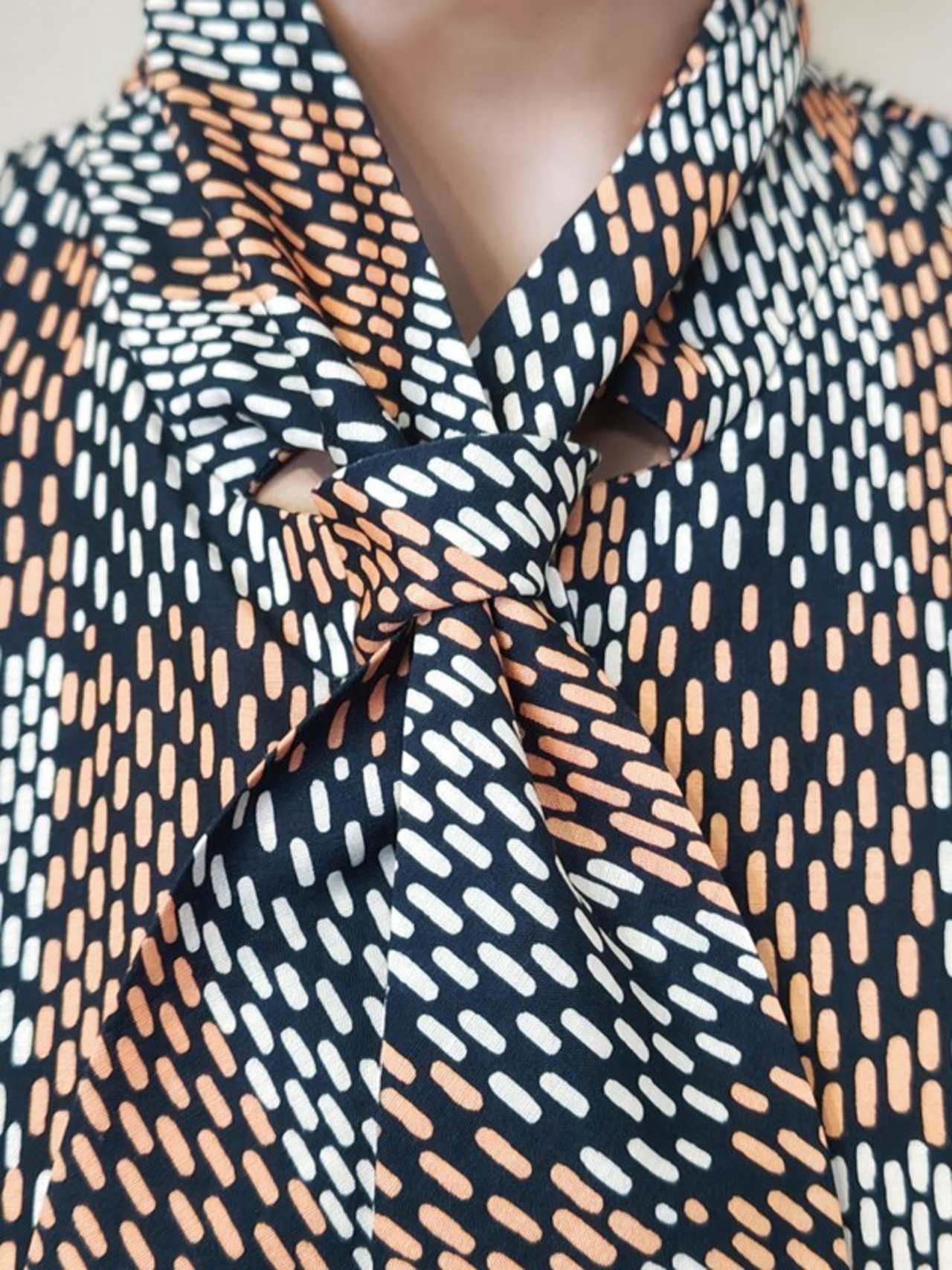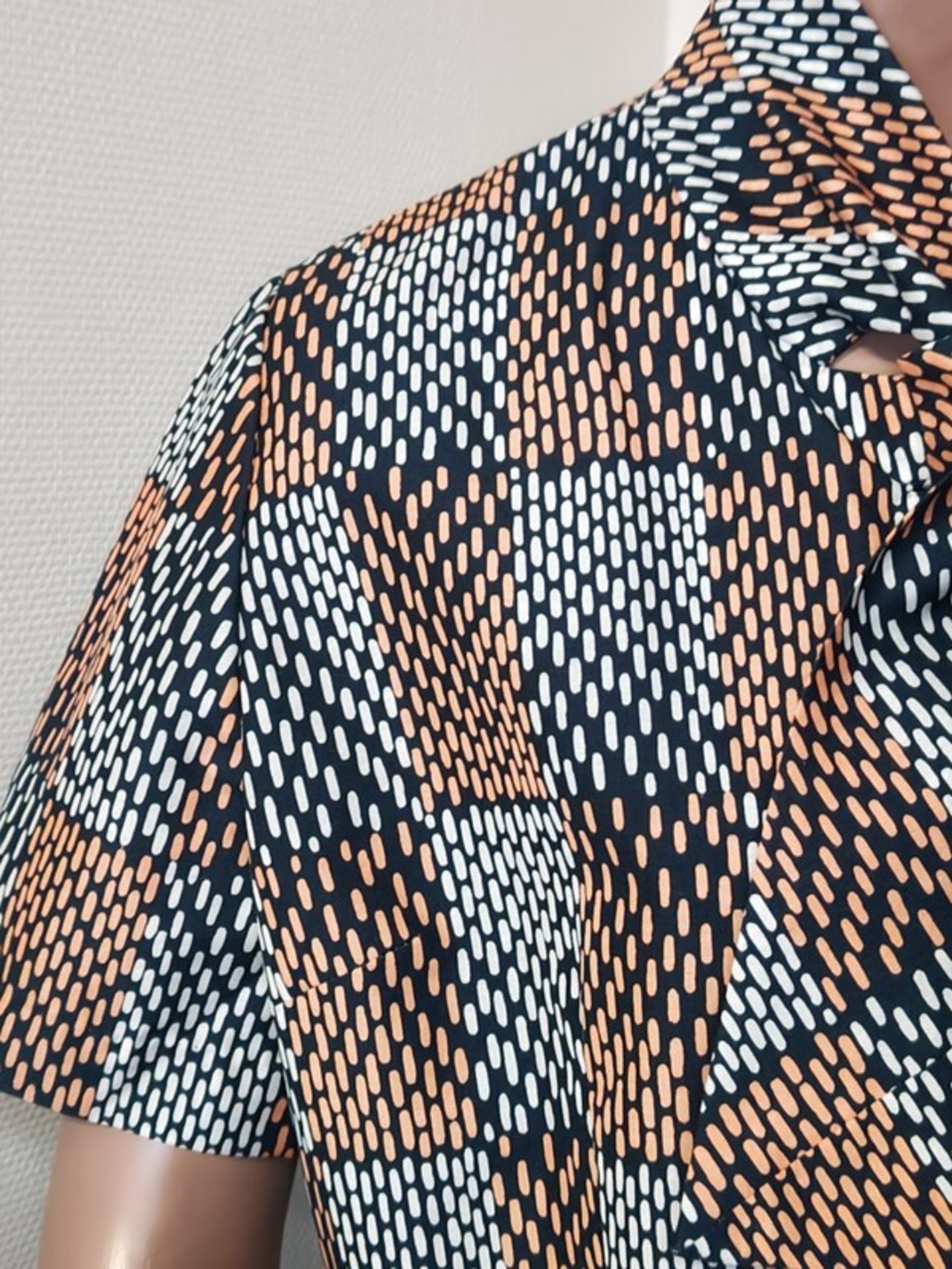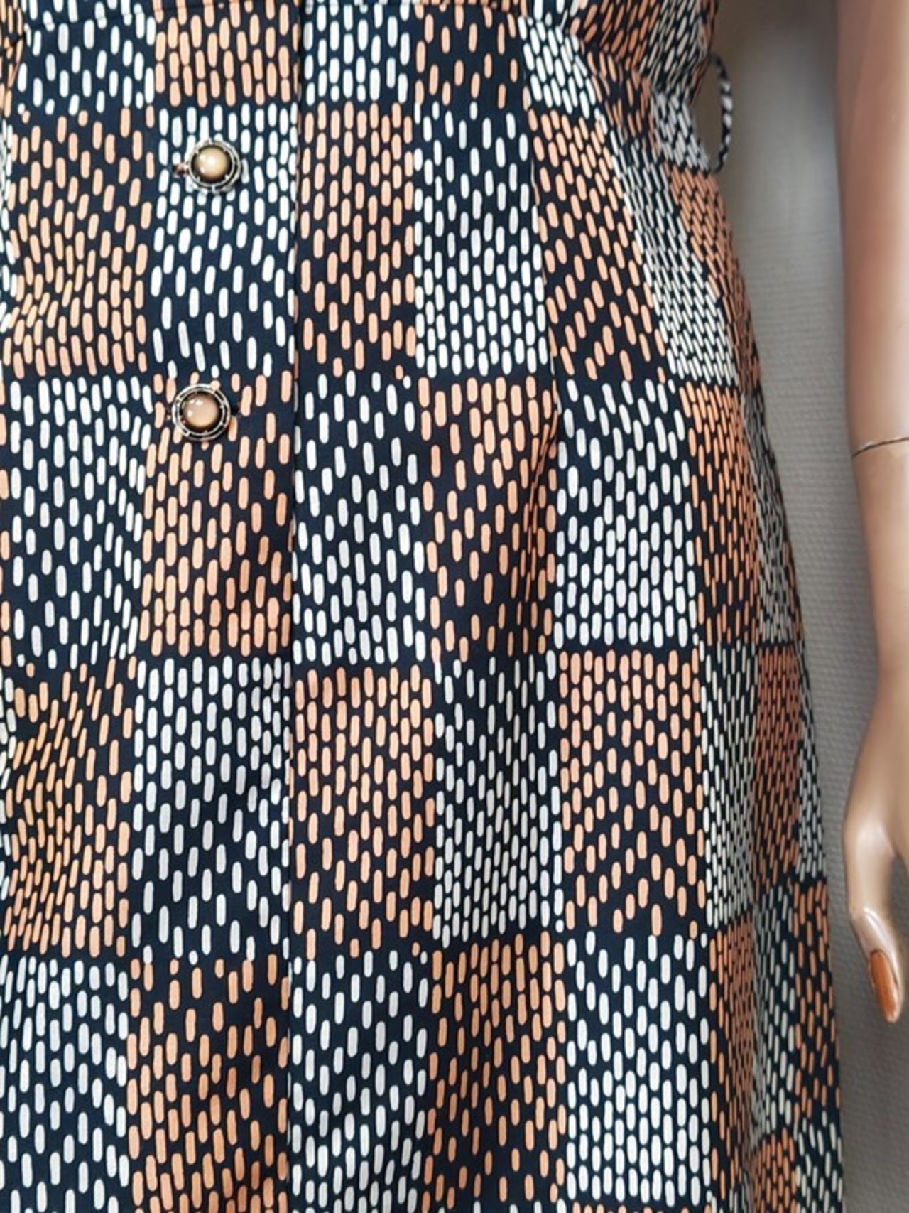 お仕立て品*黒白オレンジ幾何学柄・帽タイレトロワンピ