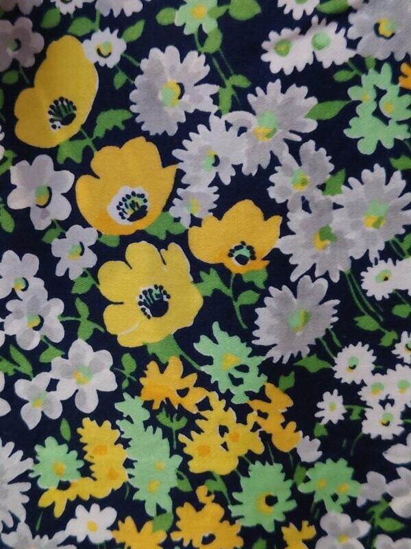 紺ベースに黄・緑・白・グレーの花柄がとっても素敵な