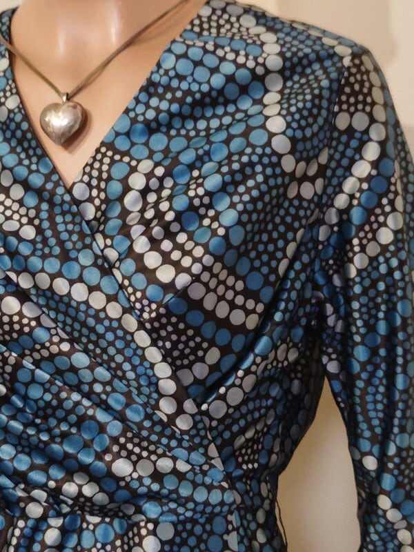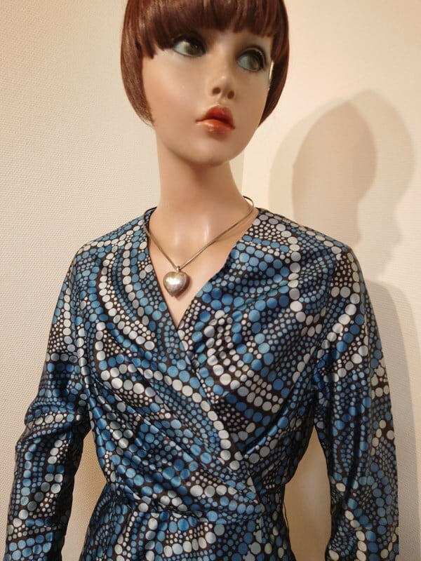 ブルー・ブラックドット柄レトロワンピ