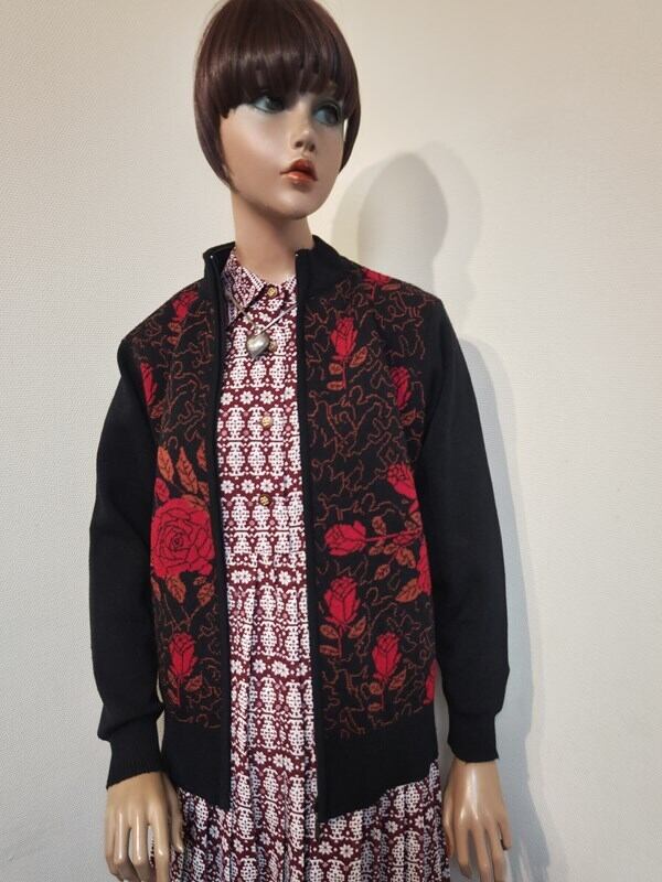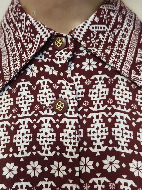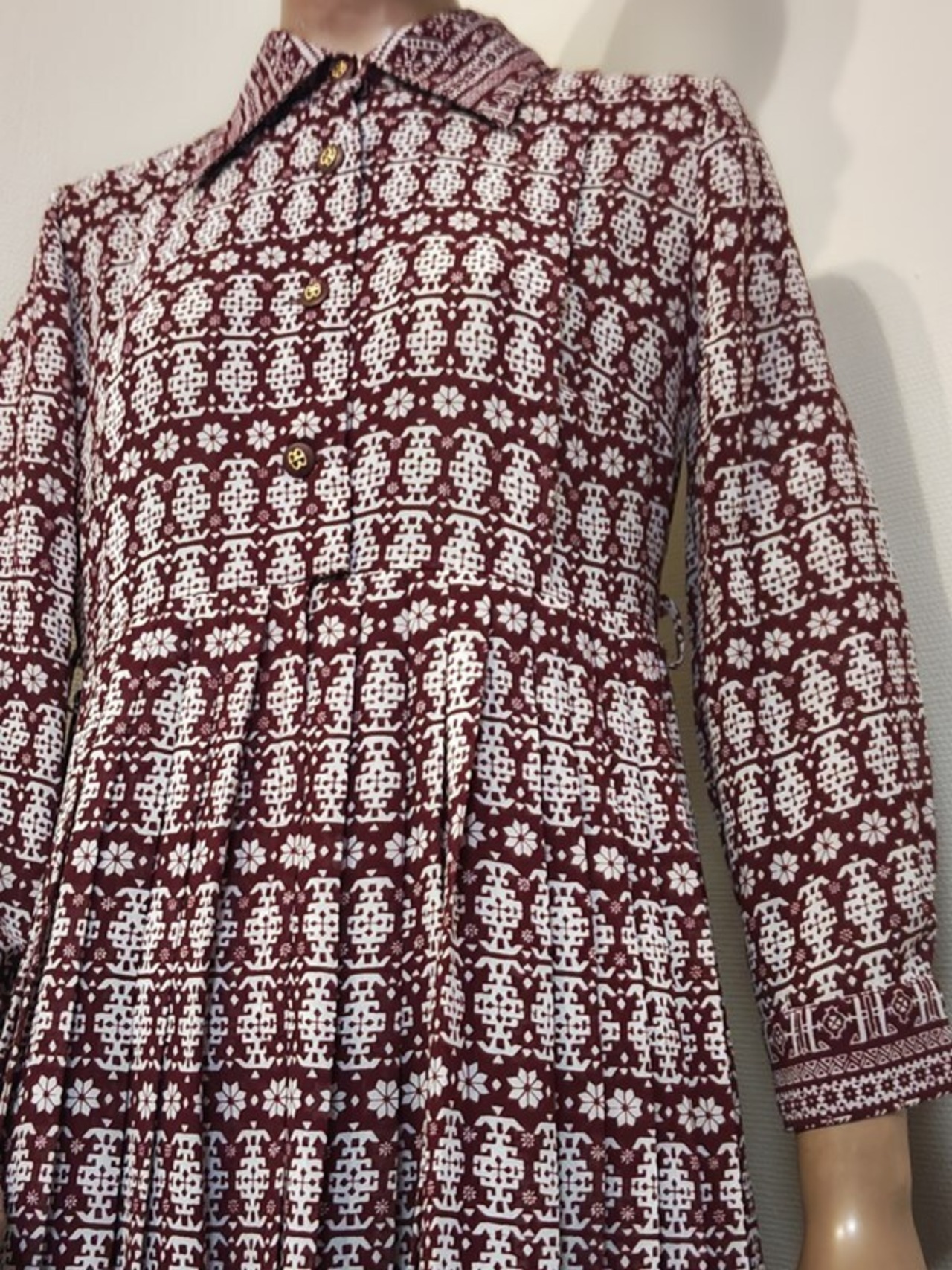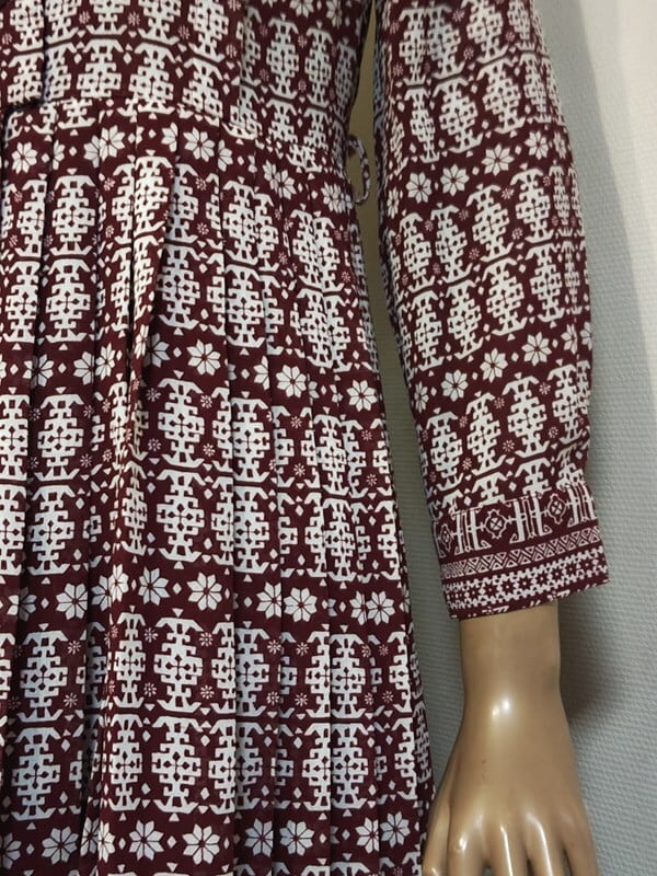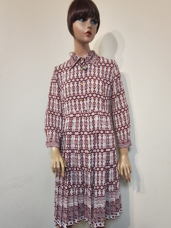あずき色x白の総柄がとっても素敵なヴィンテージワンピースです。