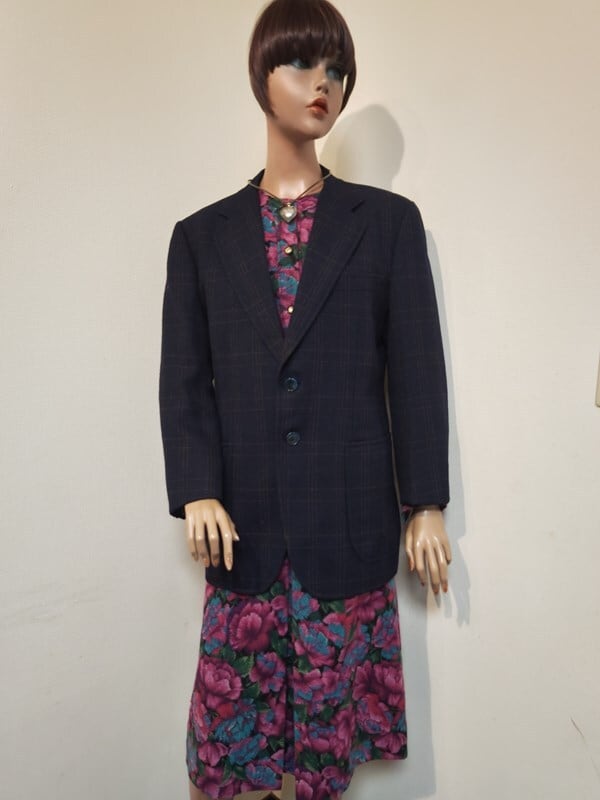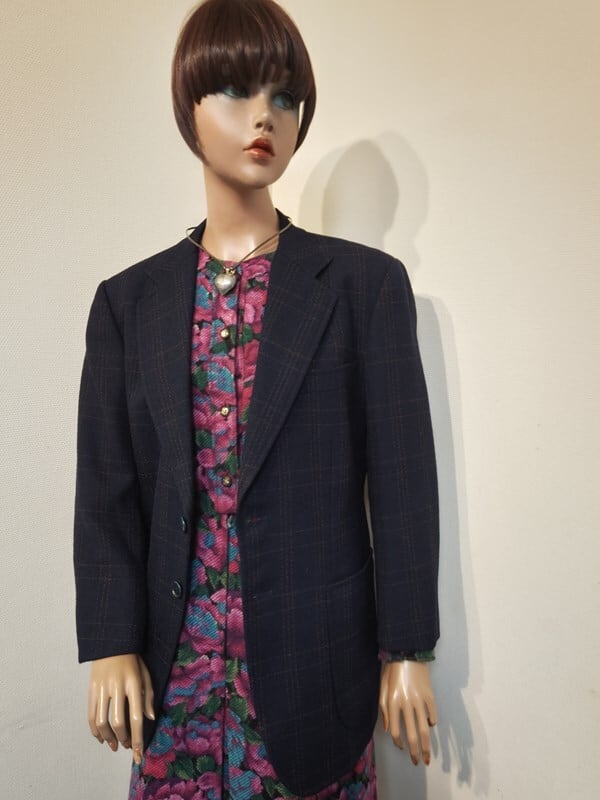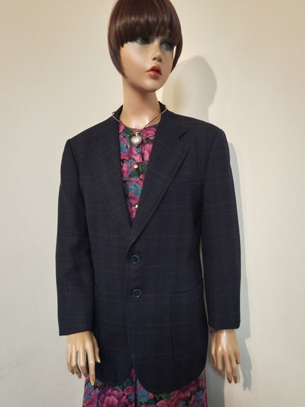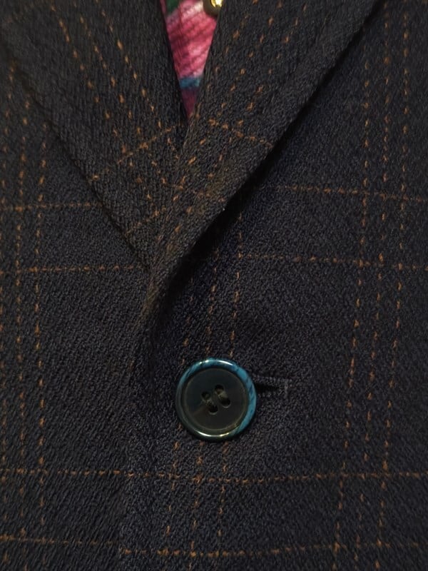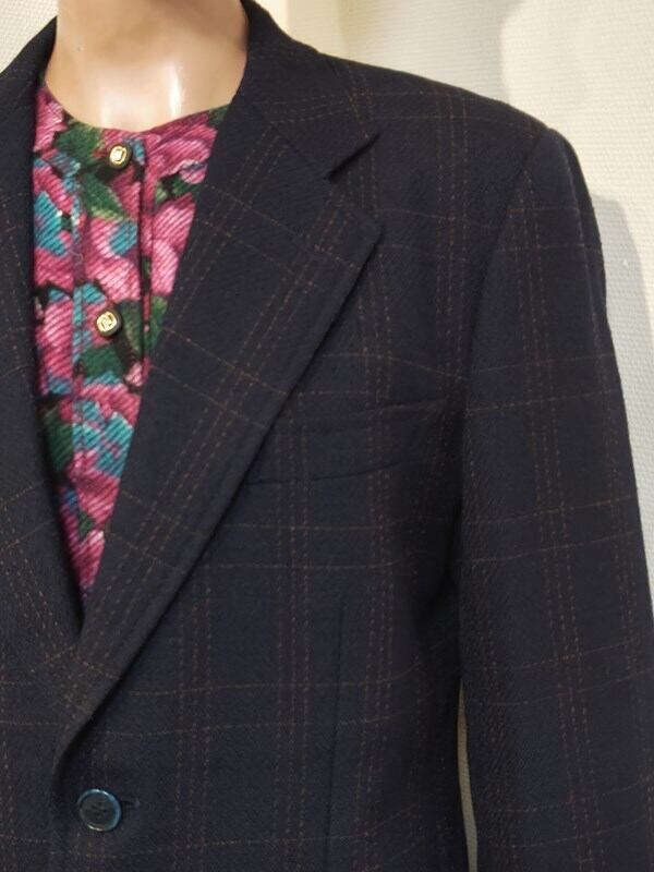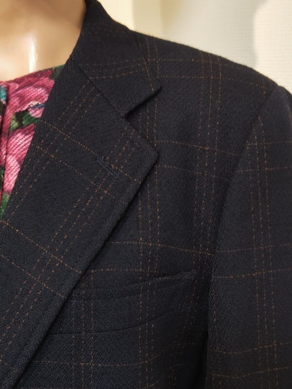 ダークネイビーxブラウンのステッチチェック柄がとっても