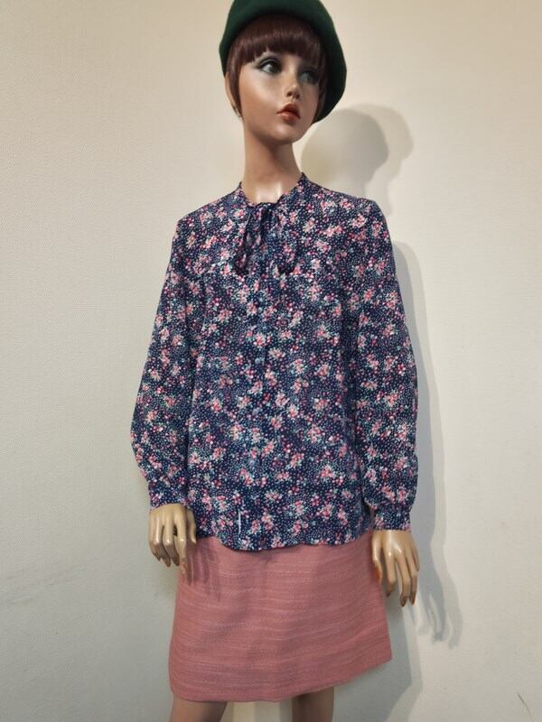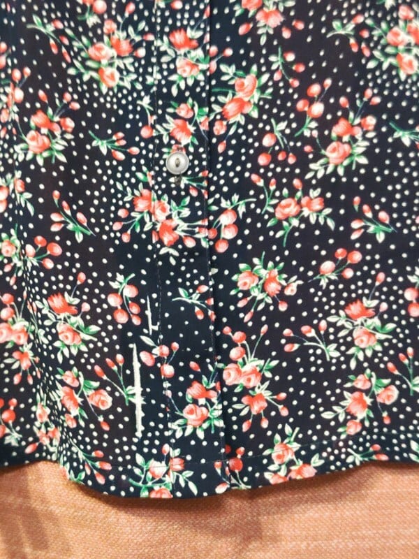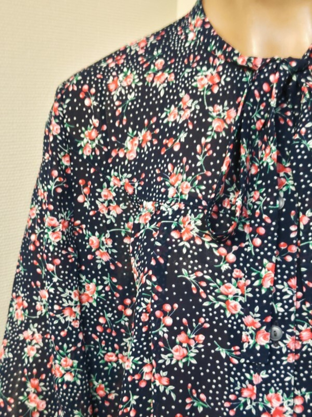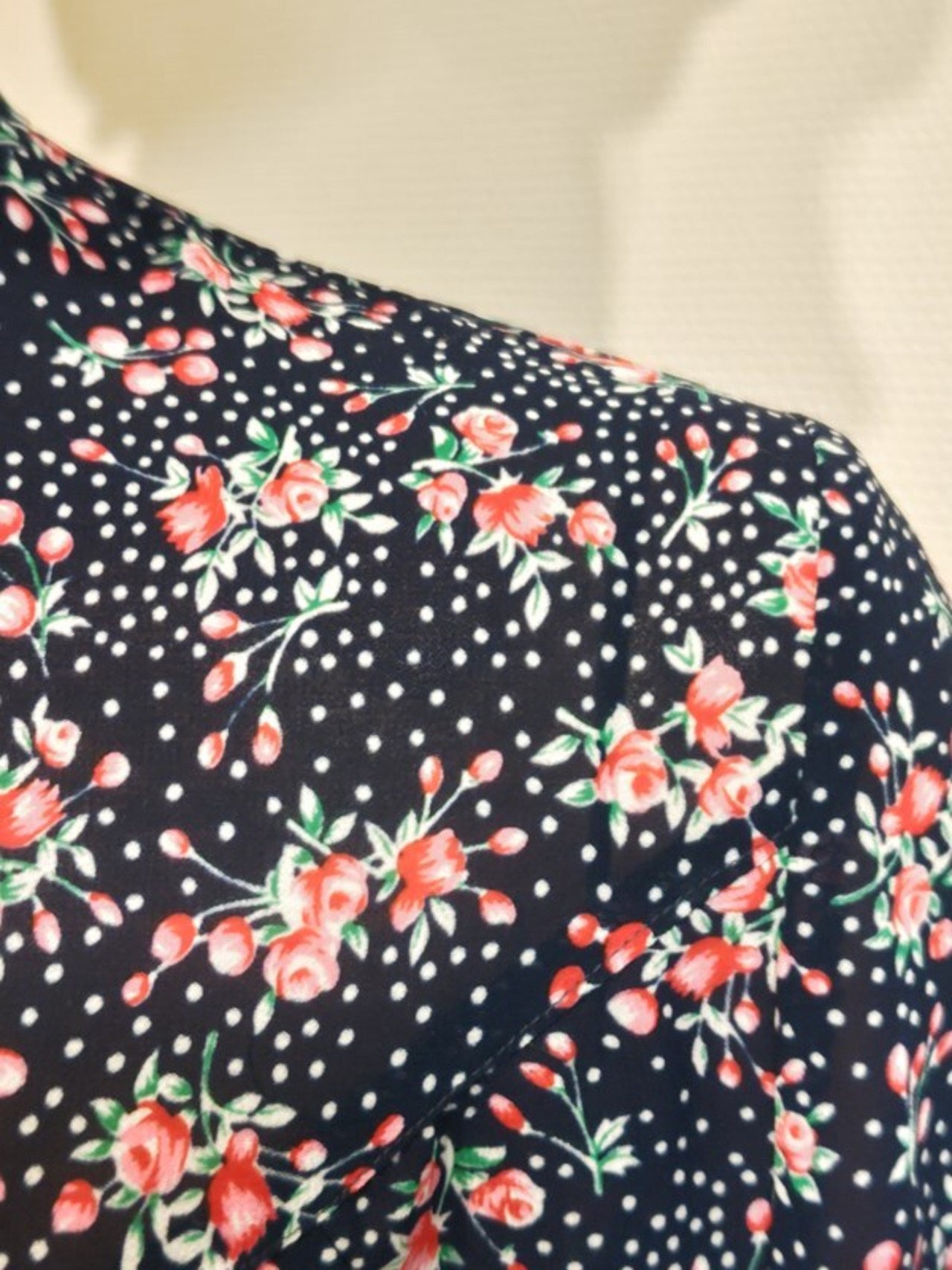 紺地に赤・ピンク・緑・白のお花xドット柄がとっても
