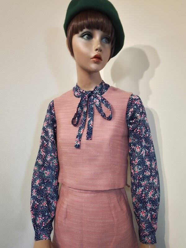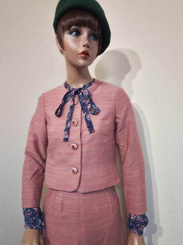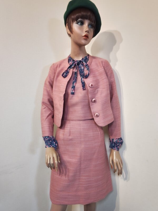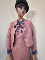 お仕立て品*ボーダー模様の織りが入ったくすみピンク