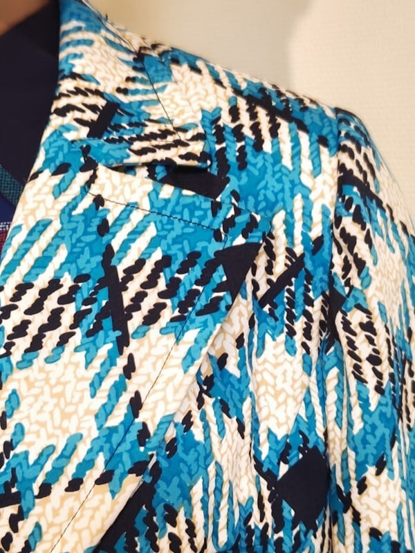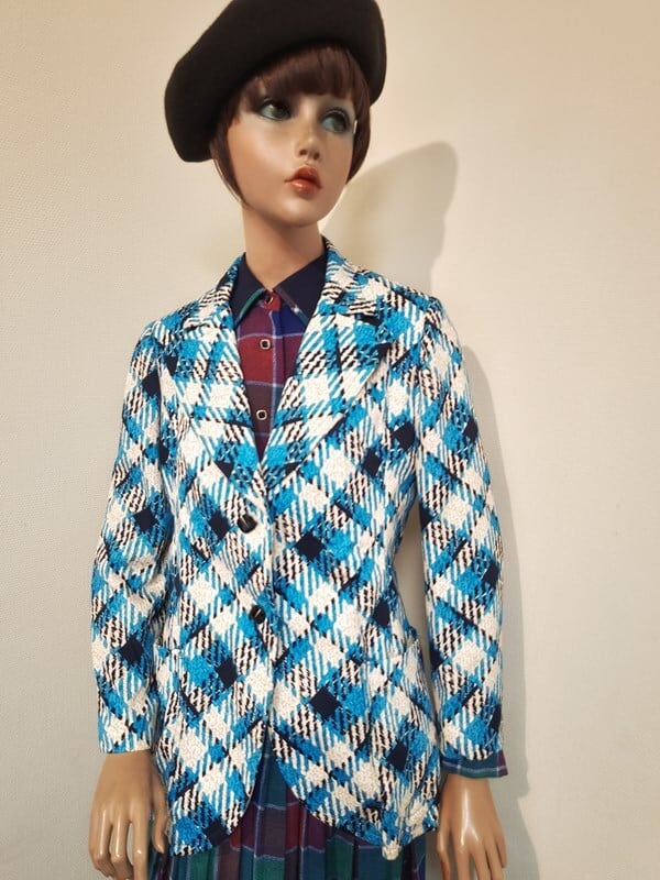 大きな襟、高級感あるレトロボタン、両サイドポケット