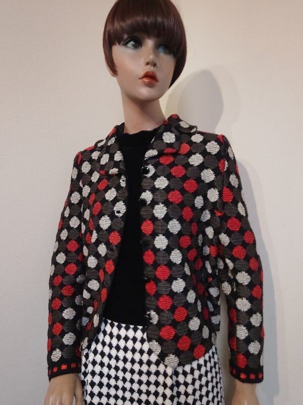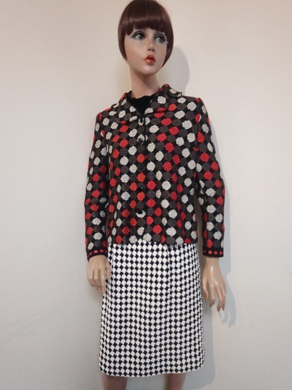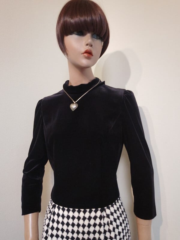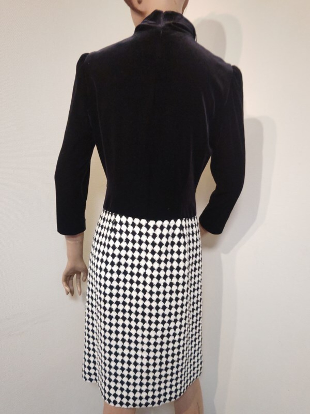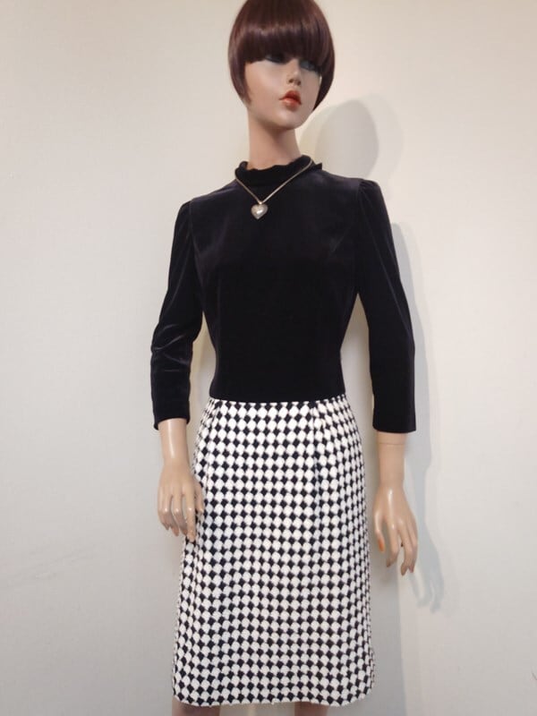 黒ベロアxモノトーンブロックチェック柄切り替えが