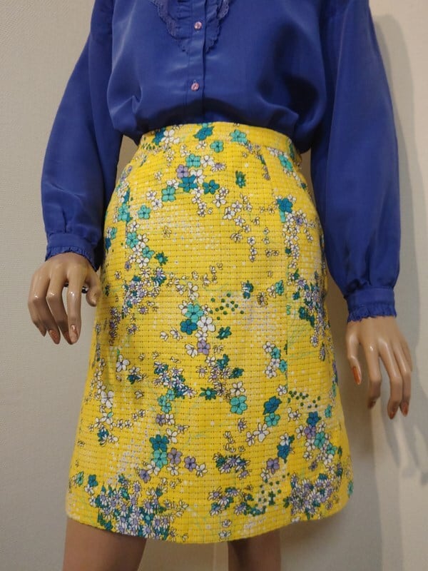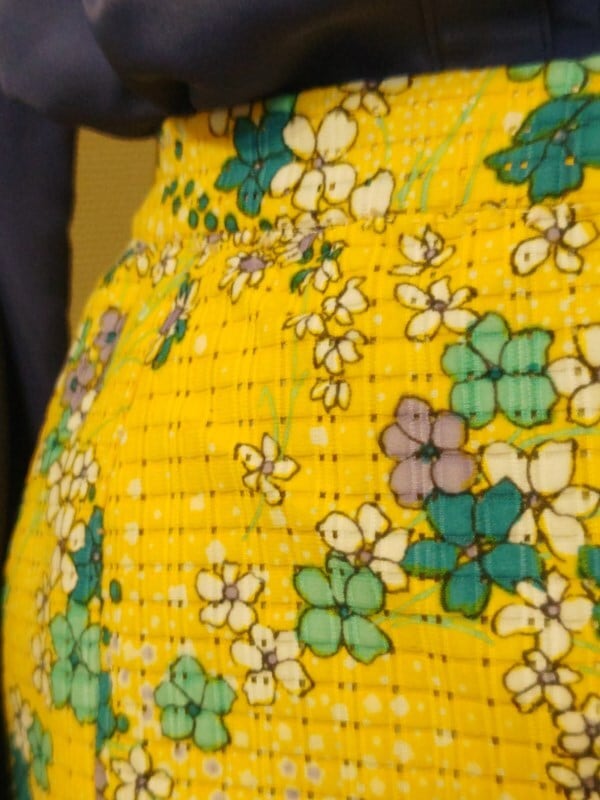 黄ベースにブルー・パープル・白の花柄がとっても素敵な