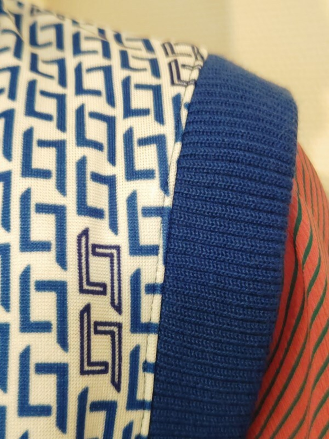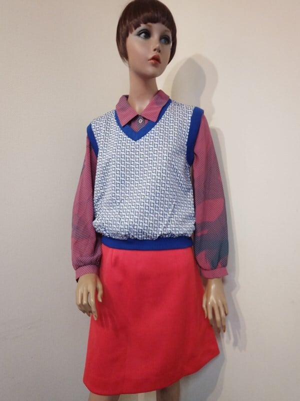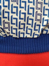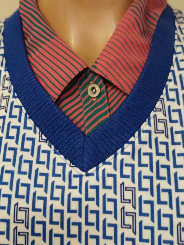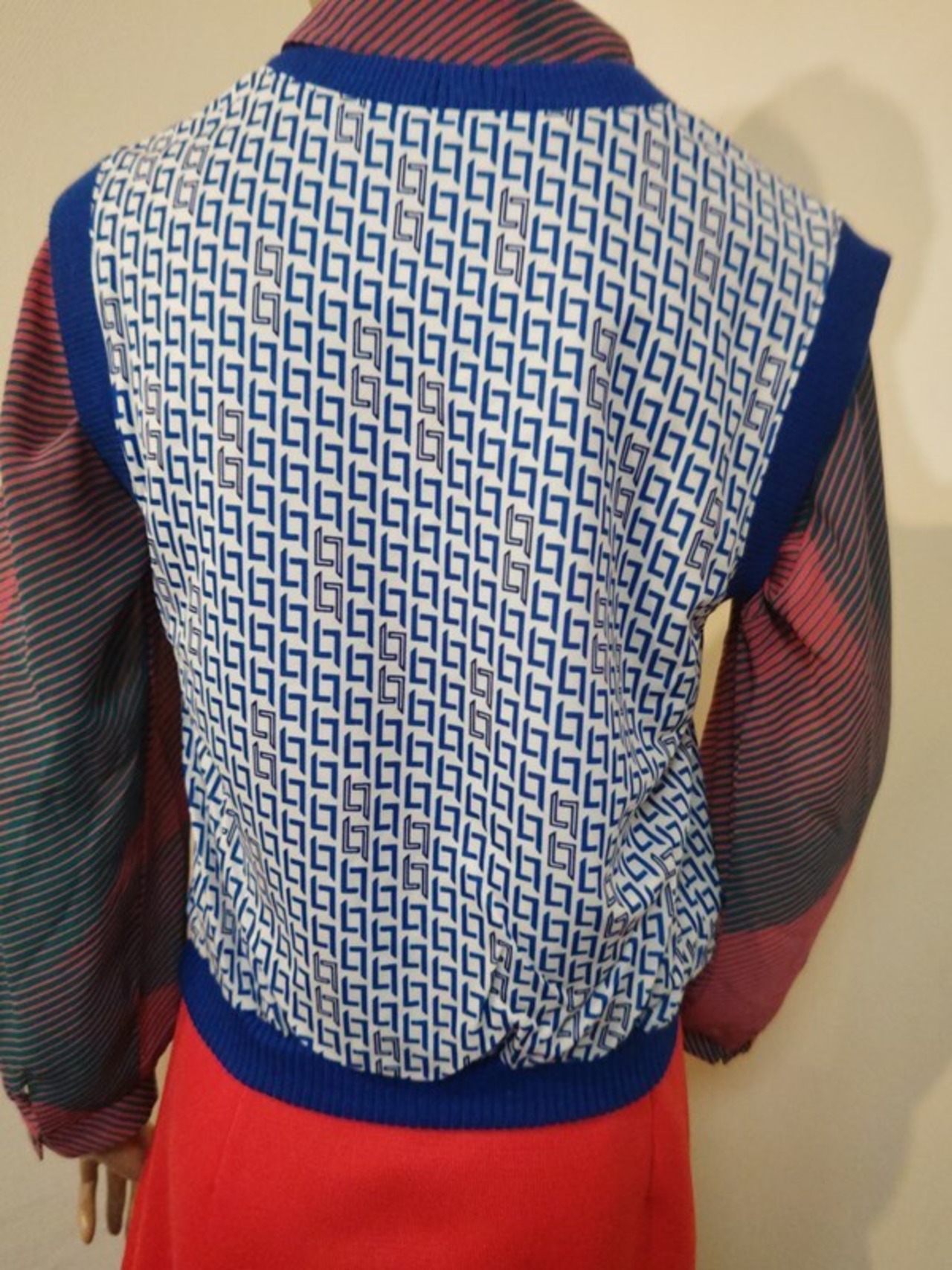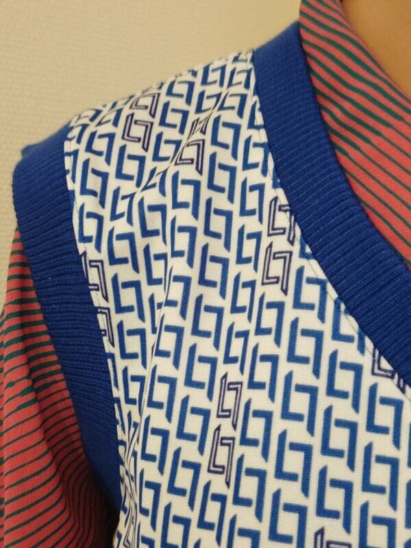 青白の幾何学柄がとっても素敵なヴィンテージベストです。