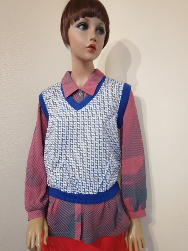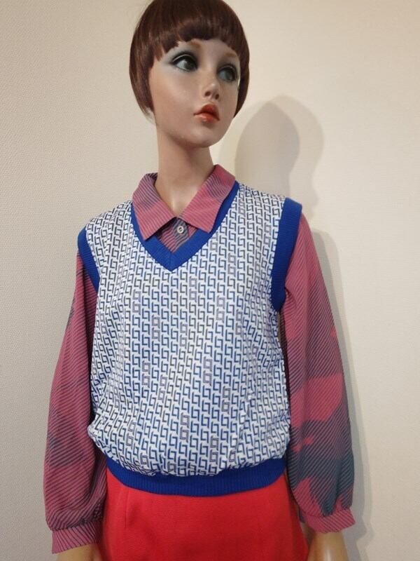 青白幾何学柄・レトロベスト