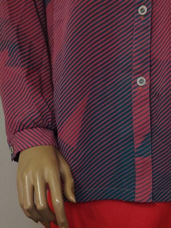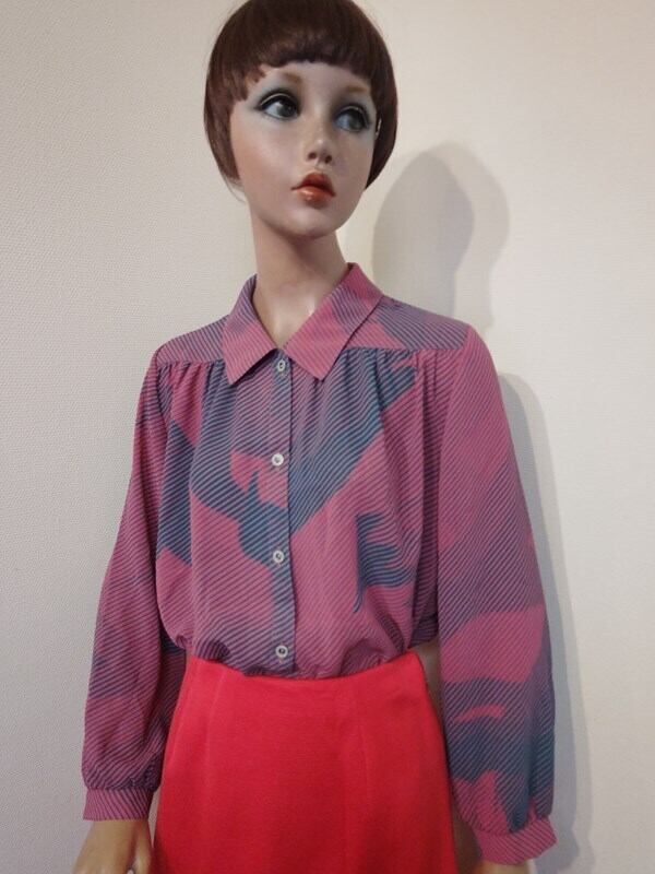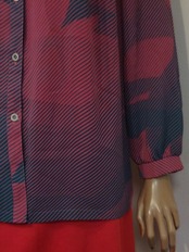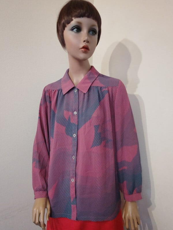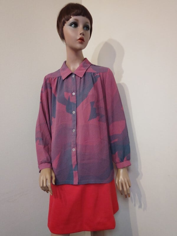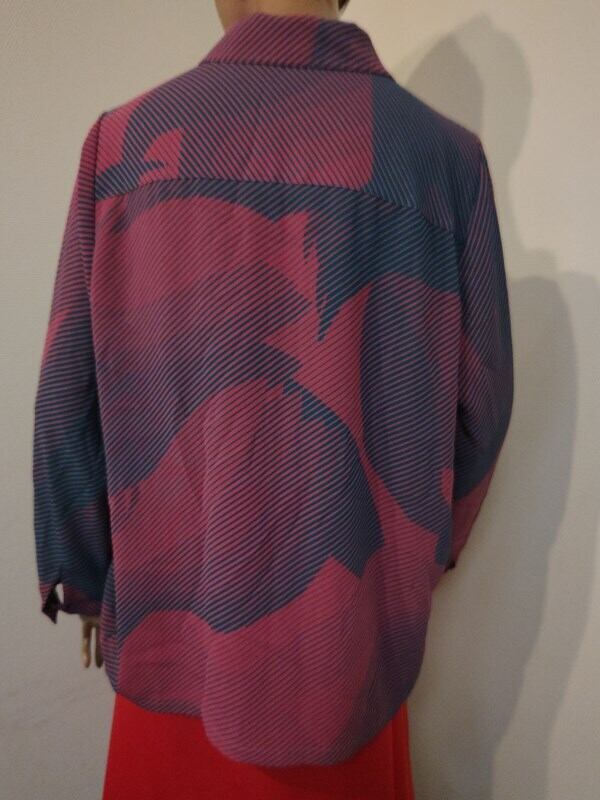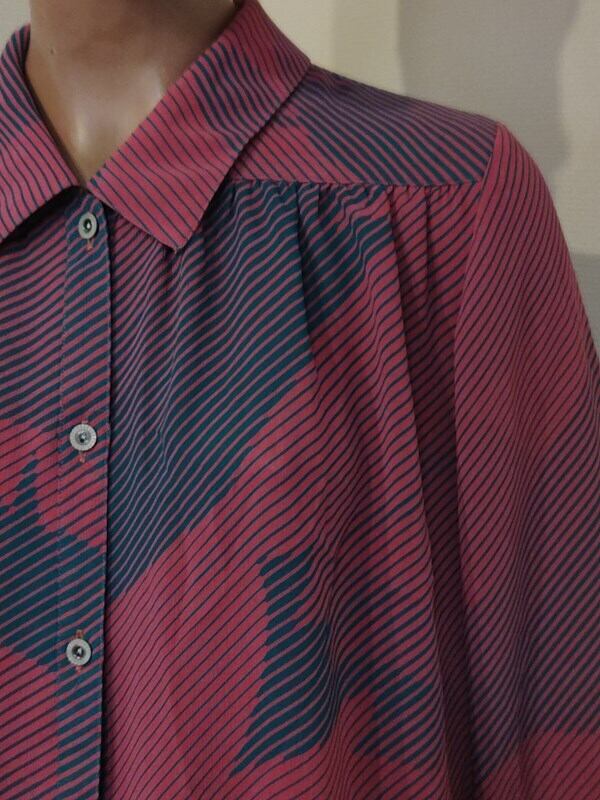 くすみピンクx青緑柄・レトロブラウス