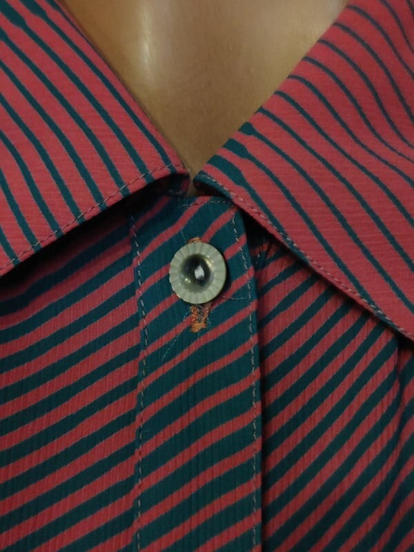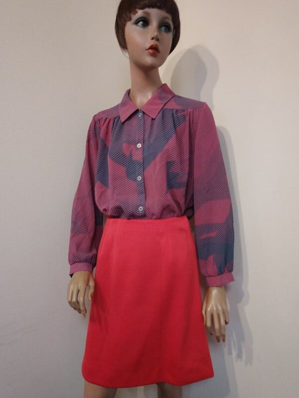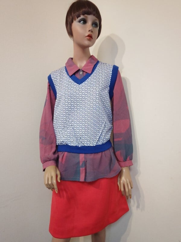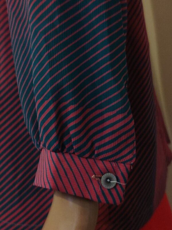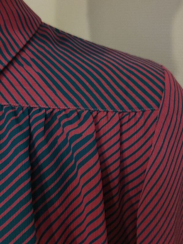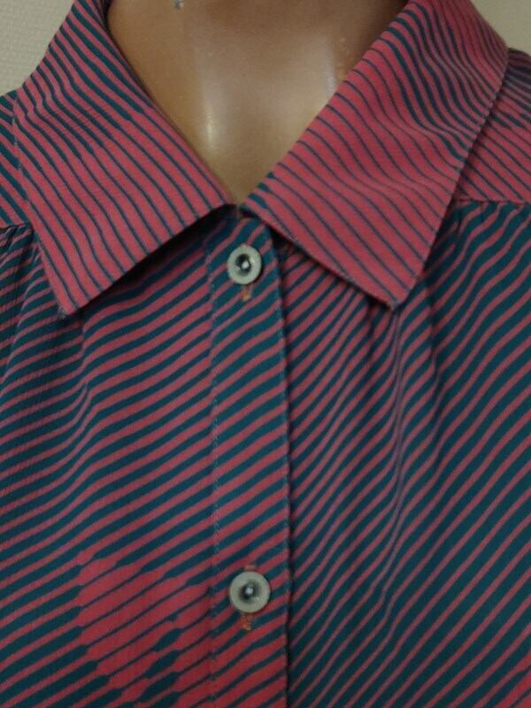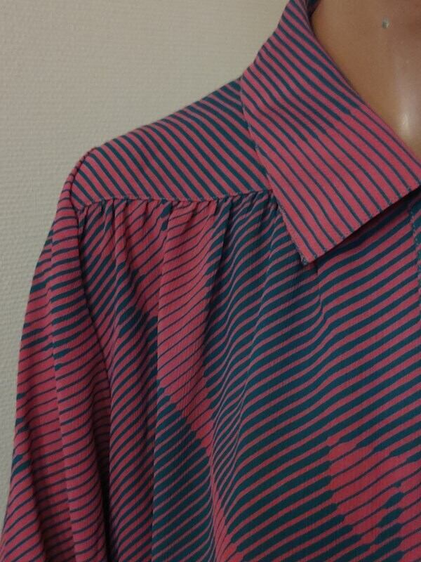 くすみピンクx青緑柄・レトロブラウス