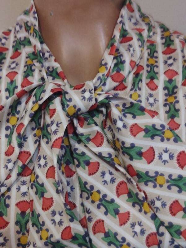 リボンタイ付き、ヒラリ袖、ウエスト柄切り替えなど